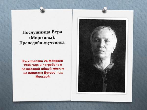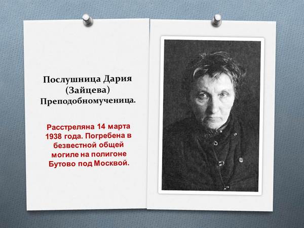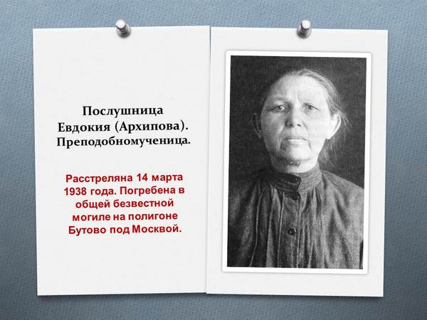 На допросе послушница Агафия (Крапивникова) сказала: «В Бога я верую, так как знаю, что Бог есть и будет навсегда, – пусть стреляют, от Бога я не откажусь»[7].