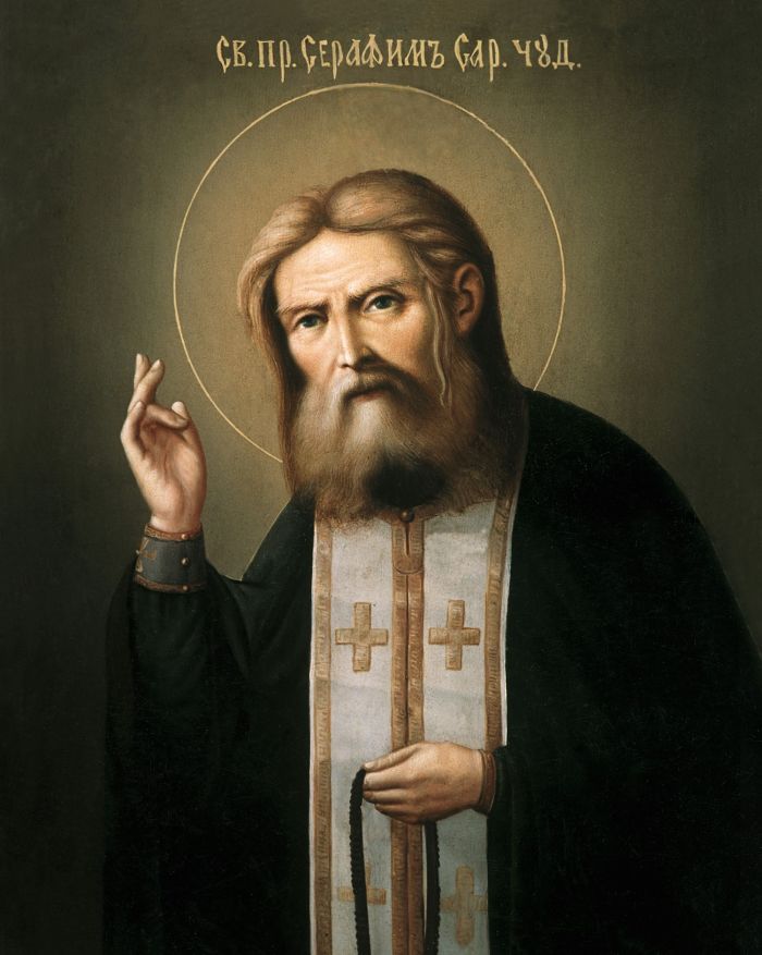 От юности Христа возлюбил еси, блаженне, и Тому единому работати пламенне вожделев, непрестанною молитвою и трудом в пустыни подвизался еси, умиленным же сердцем любовь Христову стяжав, избранник возлюблен Божия Матере явился еси. Сего ради вопием ти: спасай нас молитвами твоими, Серафиме, преподобне отче наш.