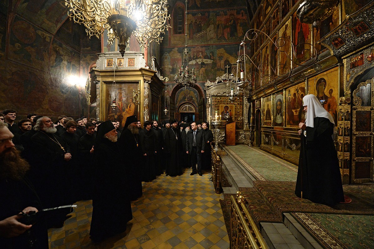В четверг 1-й седмицы Великого поста Предстоятель Русской Церкви совершил повечерие с чтением канона прп. Андрея Критского в Высоко-Петровском монастыре
