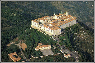 Они достигли горы Кассино, расположенной на середине пути между Римом и Неаполем. На вершине ее стоял храм, некогда посвященный Аполлону. Первым делом святой разбил идола и алтарь, чтобы превратить языческое святилище в церковь в честь св. Мартина Турского [11 н.]. Затем он стал расчищать леса, в которых местные жители еще предавались идолопоклонству, и обращать их апостольским словом. Сатана, крича от злобы и проклиная Венедикта, тщился ставить монахам препоны во время строительства монастыря. Но всякий раз могущество Божие обращало его в бегство.