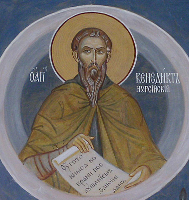 Возгоревся рачением Горним и Святым Духом,/ вся просветил еси, отче преподобне Венедикте священне,/ непрестанно моли Христа Бога, преблаженне, о всех нас.
