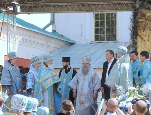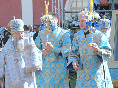 9 июля, в день праздника, горожане и многочисленные паломники двумя крестными ходами из приходских храмов города пришли в Тихвинский Богородичный Успенский мужской монастырь.