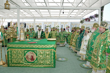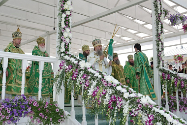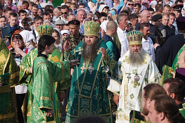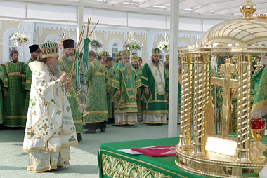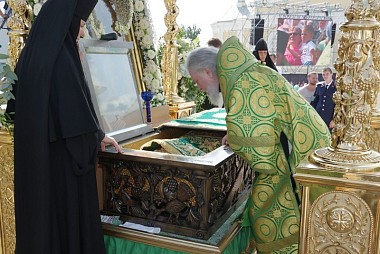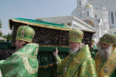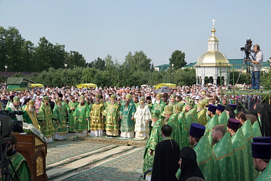 «Сегодняшний праздник – великая радость, на которой сбывается пророчество преподобного Серафима Саровского, когда мы среди лета поем Пасху. В этом году мы отмечаем также 700-летие преподобного Сергия Радонежского. Преподобный Сергий и преподобный Серафим – два крыла духовной монашеской жизни, которые обнимают весь русский народ. Когда наш народ перестает чтить свои корни, свои традиции, наступают смутные времена, но, когда люди просветляются сердцем и очищаются умом, наступает тихое благодатное житие во всяком благочестии и чистоте».