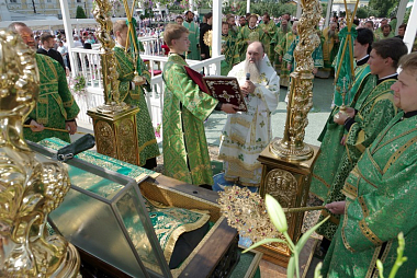 1 августа в Свято-Троицком Серафимо-Дивеевском женском монастыре состоялись торжества, посвященные дню памяти преподобного Серафима Саровского. Праздничная Божественная литургия была совершена на Соборной площади обители перед Преображенским собором.