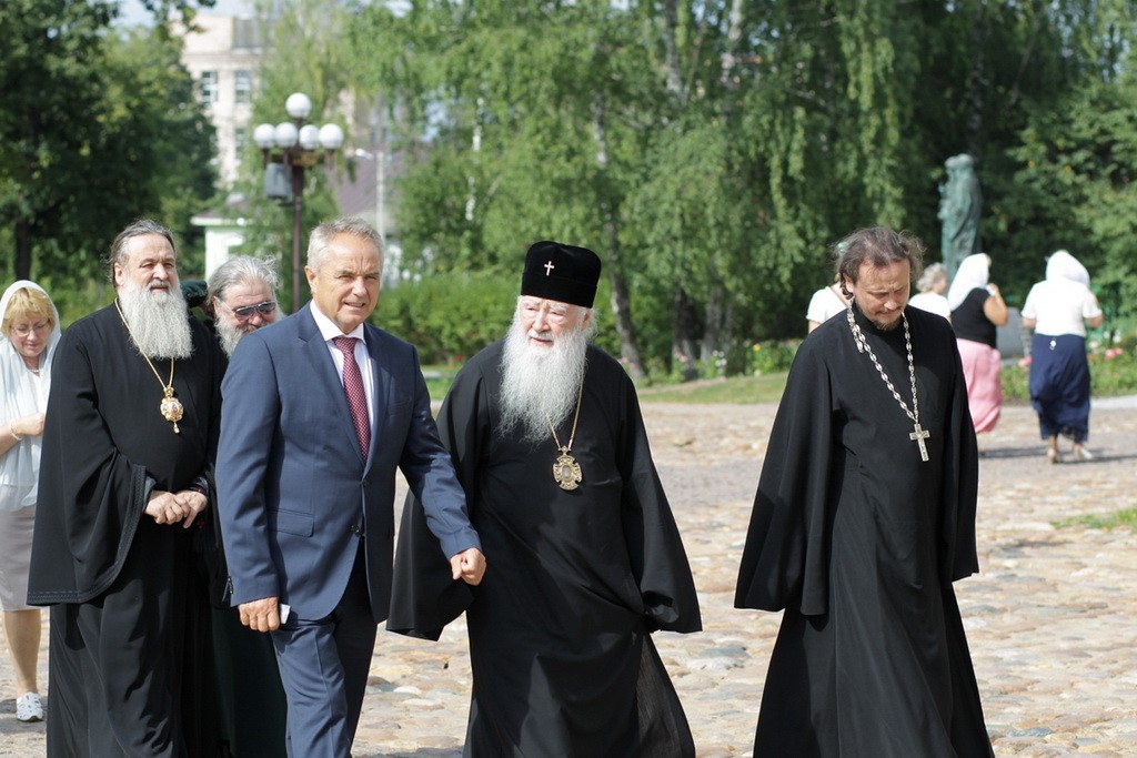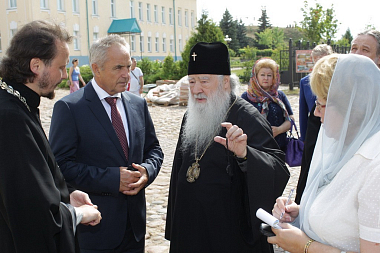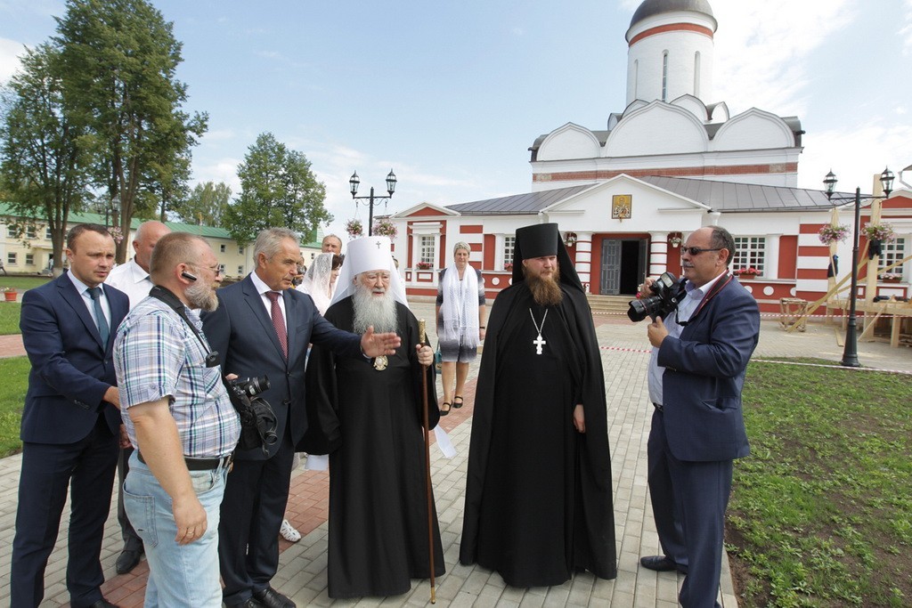 В завершение митрополит Ювеналий в сопровождении главы района и многочисленных гостей осмотрел ход подготовительных работ к визиту Святейшего Патриарха Кирилла в самой обители и г. Дмитрове.