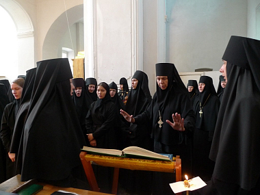 На богослужении присутствовали: настоятельница Свято-Троицкого Ново-Голутвина женского монастыря игумения Ксения (Зайцева); настоятельница Спасо-Бородинского женского монастыря игумения Серафима (Исаева); настоятельница Серафимо-Знаменского скита игумения Иннокентия (Попова); настоятельница Спасо-Влахернского женского монастыря игумения Александра (Балабанова); настоятельница Свято-Троицкого Мариинского женского монастыря игумения Илария (Иляхинская); настоятельница Успенского Колоцкого женского монастыря игумения Амвросия (Гавринева); настоятельница Казанского женского монастыря игумения Мария (Макарова); настоятельница Введенского Владычнего женского монастыря игумения Алексия (Петрова); настоятельница Свято-Троицкого Белопесоцкого женского монастыря игумения Агния (Сударикова); настоятельница Свято-Екатерининского женского монастыря г. Твери игумения Иулиания (Ритониеми-Кирси); настоятельница Вознесенского Оршина женского монастыря Тверской епархии игумения Евпраксия (Инбер); настоятельница Николаевского Клобукова женского монастыря Тверской епархии игумения Варвара (Иванова).