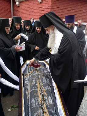 Перед отпеванием епископ Роман прочитал обращение митрополита Крутицкого и Коломенского Ювеналия: