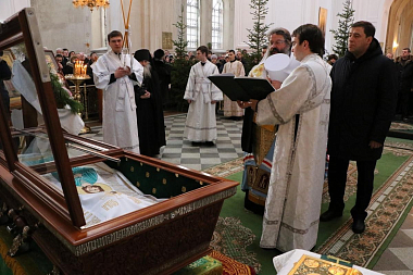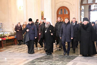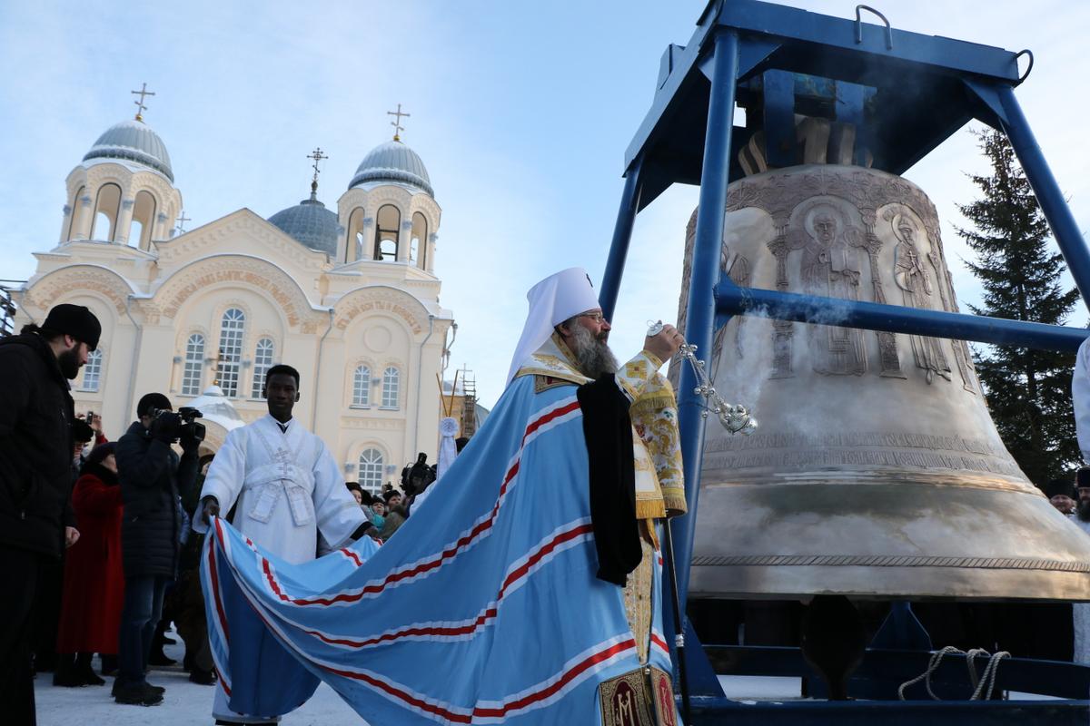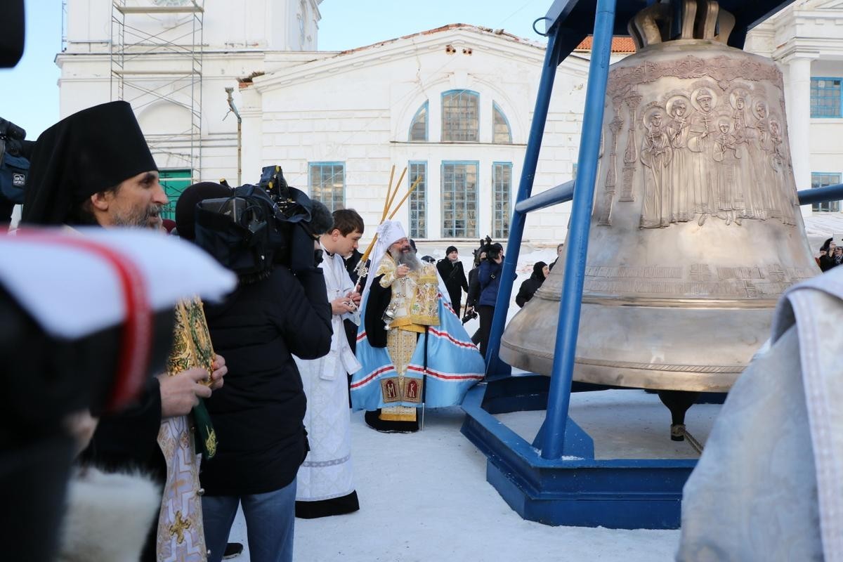 По окончании молебна у мощей святого праведного Симеона Верхотурского митрополит Кирилл возглавил чин освящения колокола. Архиерею сослужили: наместник Свято-Николаевского Верхотурского монастыря игумен Филипп (Ельшин) с клиром и секретарь митрополита иеромонах Кирилл (Корытко).