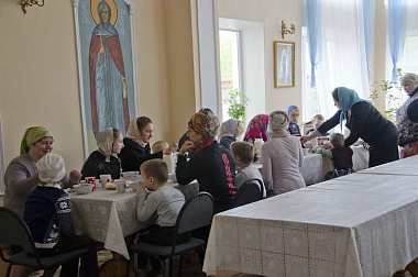 По окончании богослужения гостям была предложена трапеза, за которой читали поучительные рассказы для детей.