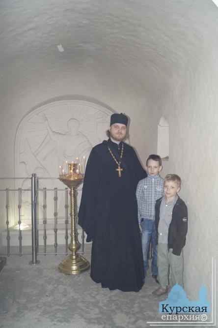 Далее паломники поехали в Свято-Троицкий Холковский мужской монастырь. В Холках для них была проведена обзорная экскурсия по пещерному храму, дети прошли крестным ходом вдоль пещер.
