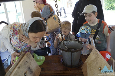 Первым местом посещения был Спасо-Преображенский кафедральный собор г. Губкина. Здесь дети приложились к святыням и позвонили в колокола.