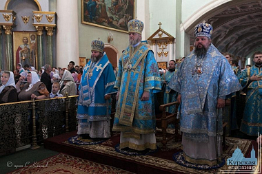 За богослужением молились игумении с сестрами из курских монастырей и тысячи православных верующих, которые прибыли из разных городов и сел России, чтобы помолиться Пресвятой Богородице пред Ее святой иконой «Знамение» Курской-Коренной и пройти вместе с курянами крестным ходом в Коренную пустынь.