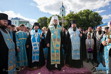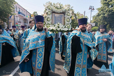 Перед началом крестного хода в Знаменском кафедральном соборе митрополит Курский и Рыльский Герман, епископ Железногорский и Льговский Вениамин и епископ Щигровский и Мантуровский Паисий в сослужении многочисленного духовенства совершили Божественную литургию.