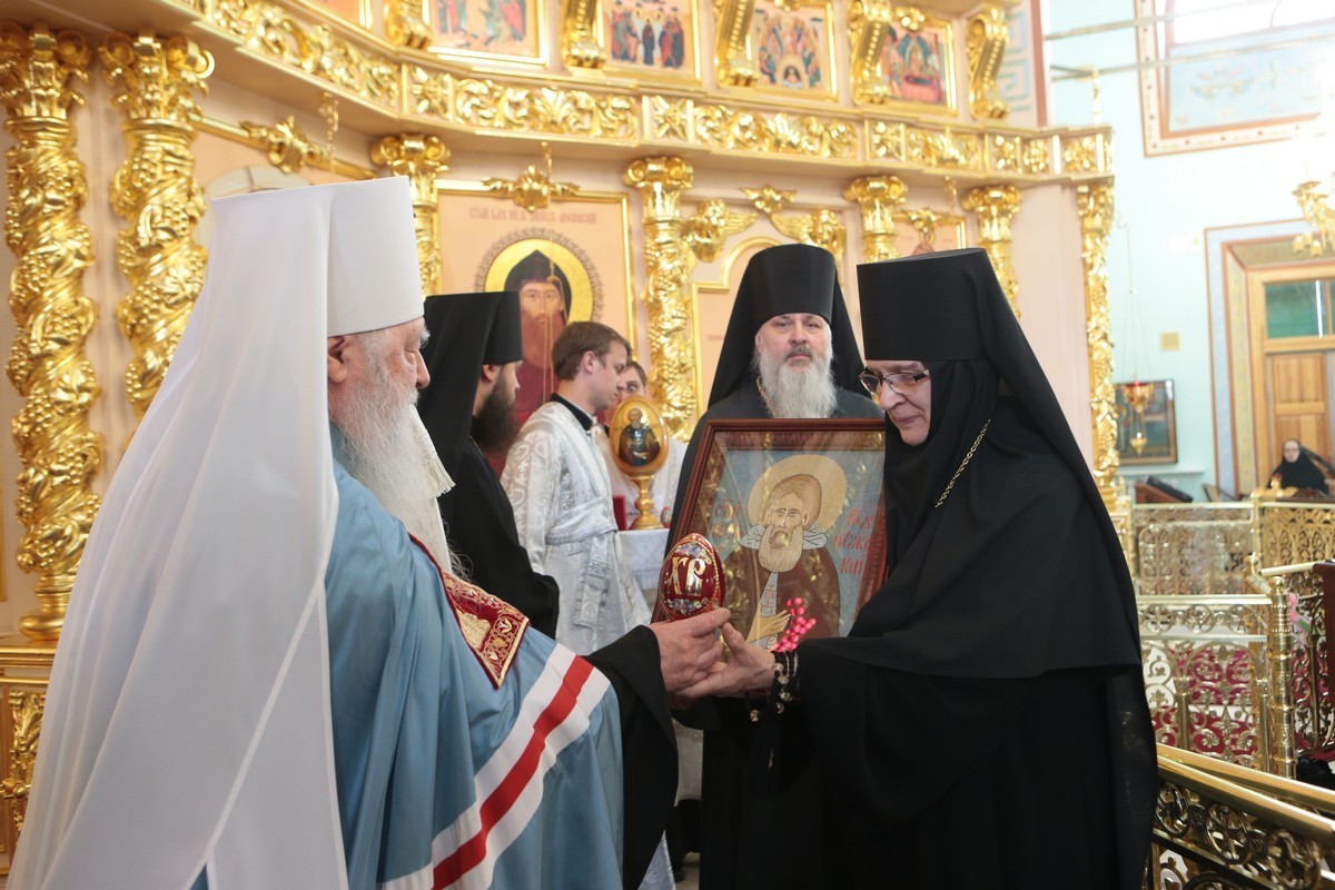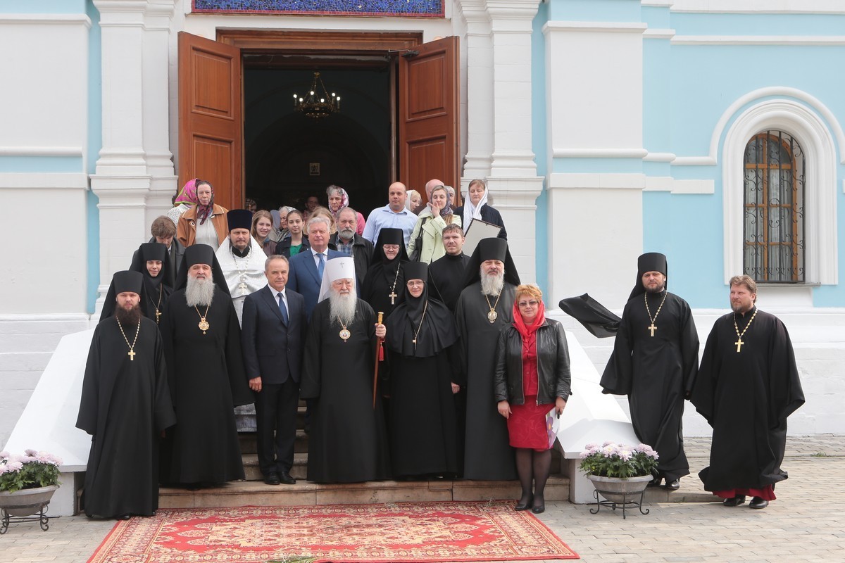 Владыка митрополит передал в дар монастырю икону преподобного Сергия Радонежского, выполненную древней техникой лицевого шитья, а также вручил высокие патриаршие награды семье Тягачевых. Его Святейшество удостоил Леонида Васильевича Тягачева ордена святого благоверного князя Даниила Московского I степени, а Светлану Николаевну — ордена святой равноапостольной княгини Ольги II степени. Также митрополичьи награды получили активные труженики и участники восстановления Спасского собора. От лица награжденных Его Высокопреосвященству была преподнесена икона Нерукотворного образа Господа Иисуса Христа.