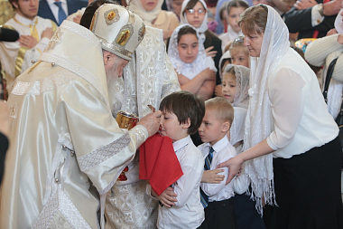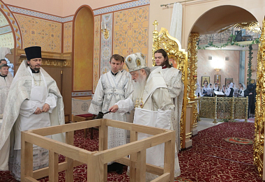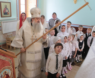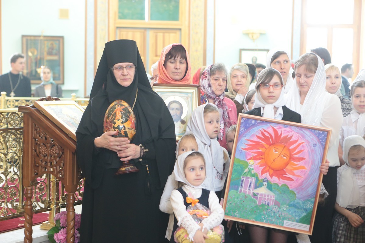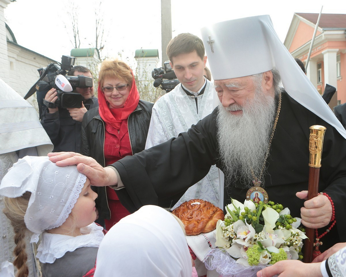 В дар Владыке митрополиту Матушка игумения преподнесла пасхальное яйцо. Учащиеся воскресной школы от себя также поздравили митрополита Ювеналия.