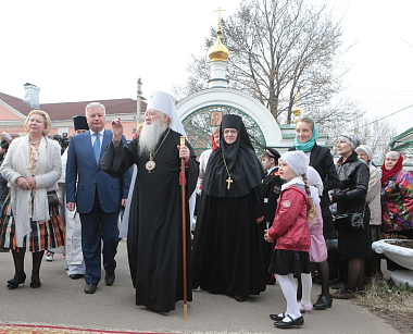 По завершении Божественной литургии и пасхального крестного хода со словами приветствия к митрополиту Ювеналию обратилась игумения монастыря Александра (Балабанова):