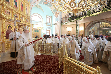 В этот день митрополиту Ювеналию сослужили: епископ Видновский Тихон; епископ Серпуховской Роман, благочинный монастырей Московской епархии; благочинный церквей Дмитровского округа протоиерей Афанасий Чорногуз, а также отцы благочинные, настоятели мужских монастырей Московской епархии и духовенство Дмитровского и Рогачевского благочиний. За богослужением молились игумении подмосковных женских монастырей: Спасо-Влахернского Александра (Балабанова), Введенского Владычнего в Серпухове Алексия (Петрова) и Свято-Троицкого Белопесоцкого в г. Ступино Агния (Сударикова).