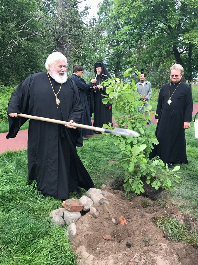 В завершение делегация Финляндской Православной Церкви осмотрела остров и владыка Лев посадил памятный дуб.