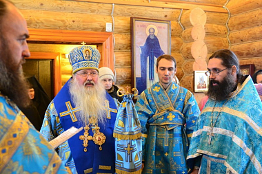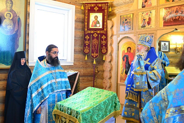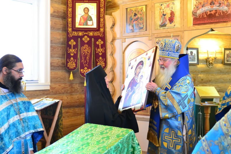 По окончании Литургии Его Высокопреосвященство преподнес в дар новообразованной обители список со Святой Горы Афон иконы Божией Матери «Иверская» и обратился к старшей сестре монастыря инокине Ариадне (Орловой), сестрам и всем собравшимся с архипастырским словом:
