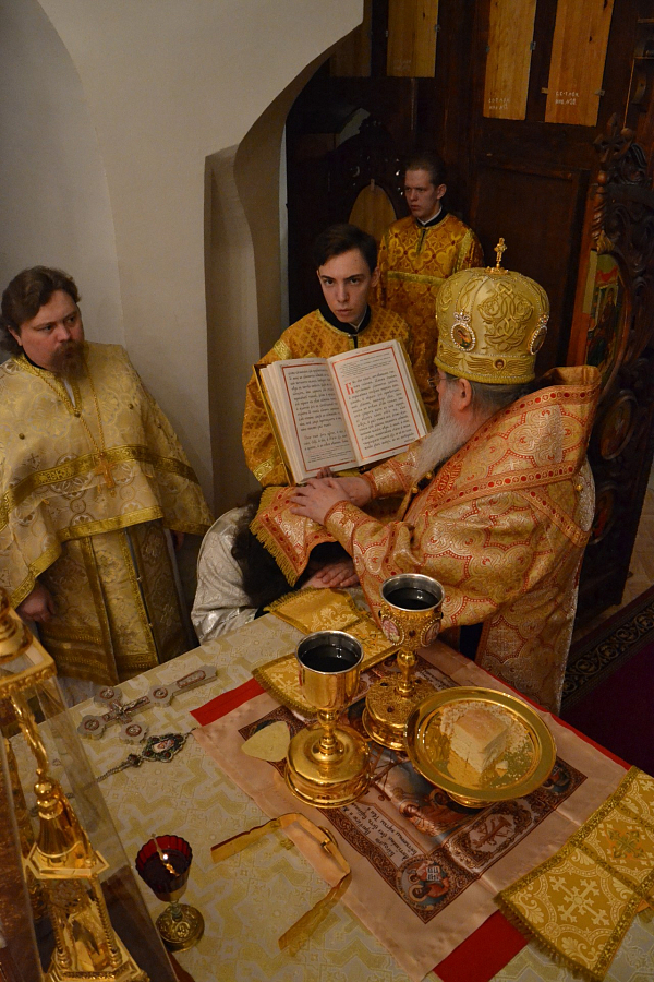 За Божественной литургией в храме Свт. Феофана Соликамского Его Высокопреосвященство совершил хиротонию – в сан иеродиакона рукоположен насельник монастыря инок Зиновий (Романов).