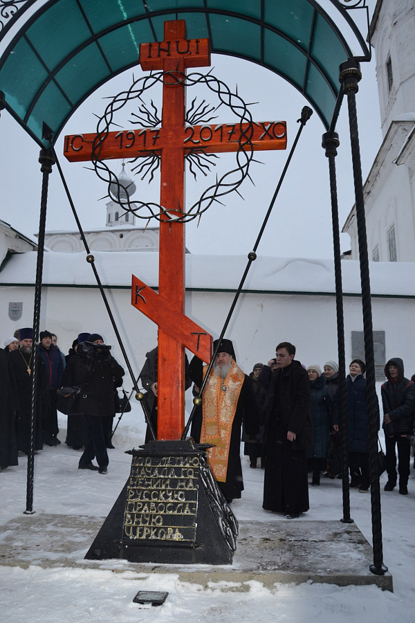 В завершение архиепископ Зосима освятил у входа в святую обитель крест-памятник, установленный к 100-летию начала гонений на Русскую Православную Церковь.
