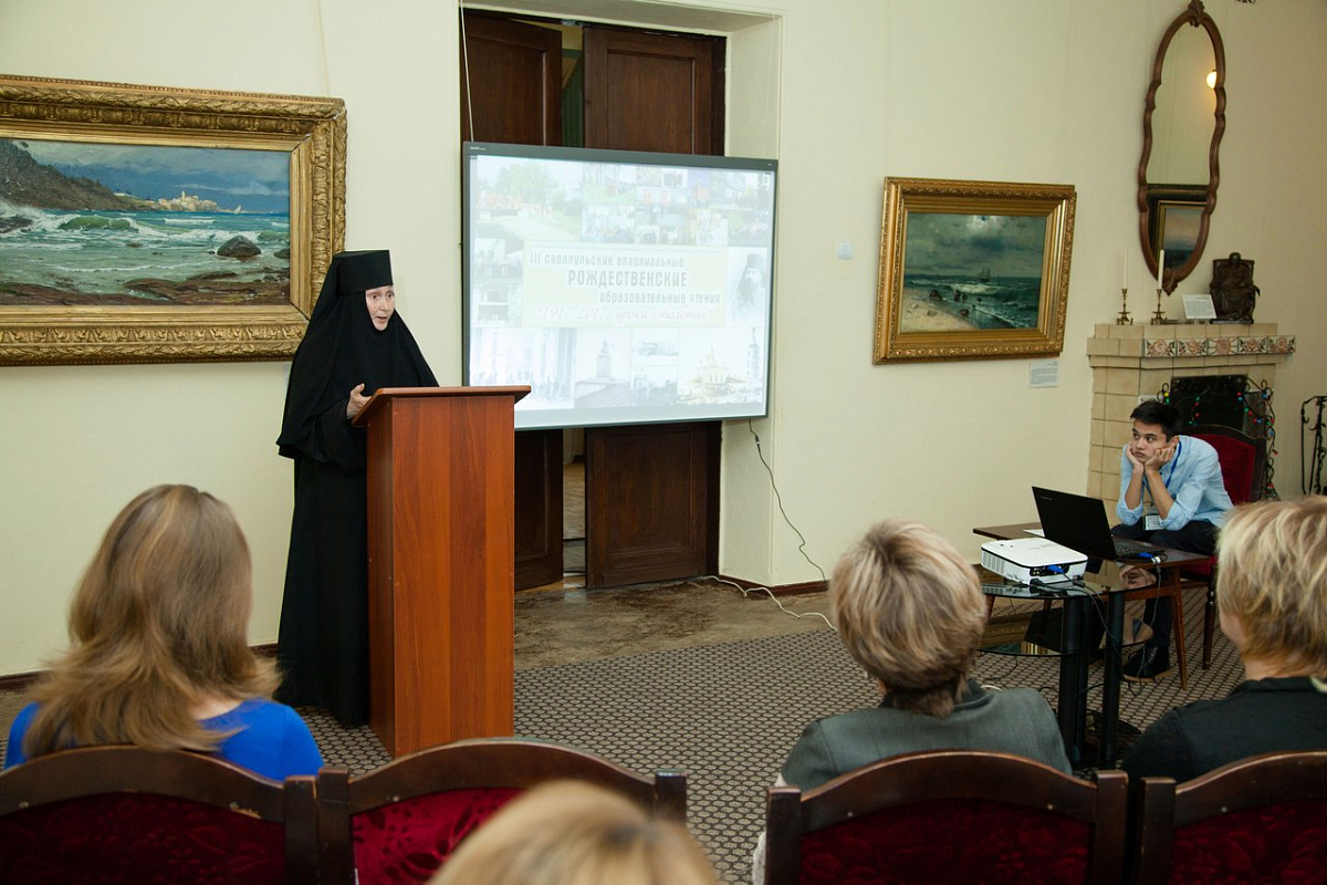 Насельница Благовещенской женской монашеской общины при архиерейском подворье храма в честь Иконы Пресвятой Богородицы «Скоропослушница» г. Сарапула монахиня Екатерина (Королева) выступила на Чтениях с докладом, в котором провела параллели с Н.Ф. Жилиным, в церковно-приходской школе имени которого сейчас располагается община с Воскресенским храмом, в следующем году отмечающем 200-летие. Оказалось, что Николай Жилин длительное время был старостой данного храма и именно при его участии О.И. Ижболдиной в церкви был устроен Ольгин придел.