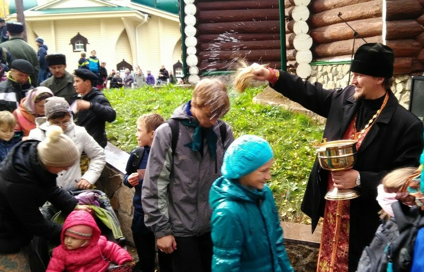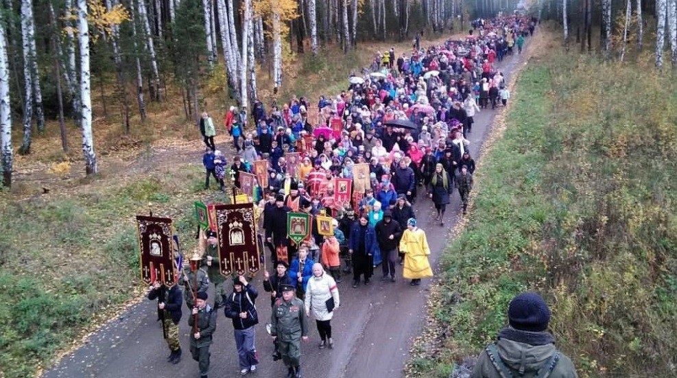 После молитвы и построения школьники, их родители и педагоги прошли от храма в честь Владимирской иконы Пресвятой Богородицы на Семи ключах города Екатеринбурга до мужского монастыря Святых Царственных страстотерпцев на Ганиной яме.