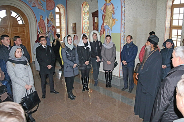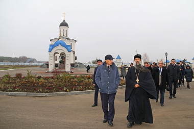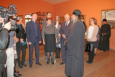 После экскурсии гостей во главе с В.С. Бабуриным встретил наместник монастыря архимандрит Тихон (Завьялов).