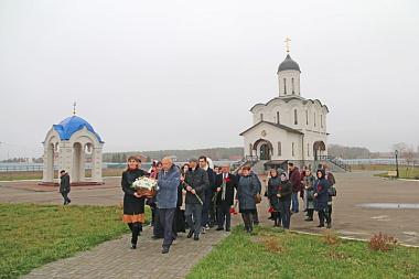Делегаты сделали памятное фото и возложили к памятнику Великому князю Московскому Иоанну III цветы. Также делегаты возложили цветы и к памятному кресту погибшим защитникам Отечества у здания музея-диорамы и совершили их молитвенное поминовение.