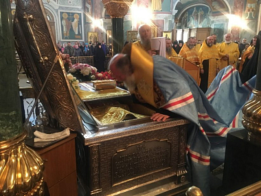 По благословению главы Нижегородской митрополии митрополита Нижегородского и Арзамасского Георгия игумения Сергия передала митрополиту Ханты-Мансийскому и Сургутскому Павлу икону Собора Дивеевских святых с частицами мощей преподобных и блаженных жен Дивеевских для женского монастыря во имя Иконы Божией Матери «Умиление» г. Сургута.