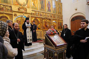 Его Преосвященству сослужили клирики обители протоиерей Олег Криволап, иереи Николай Сорокин, Никифор Некрылов, Леонид Костаненко и Александр Колесов.