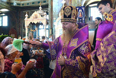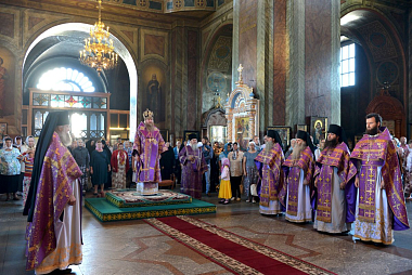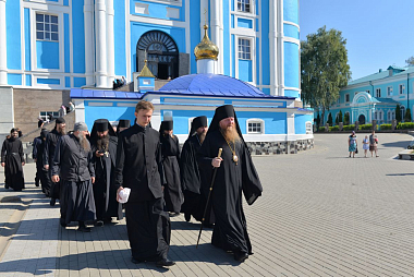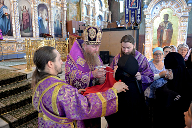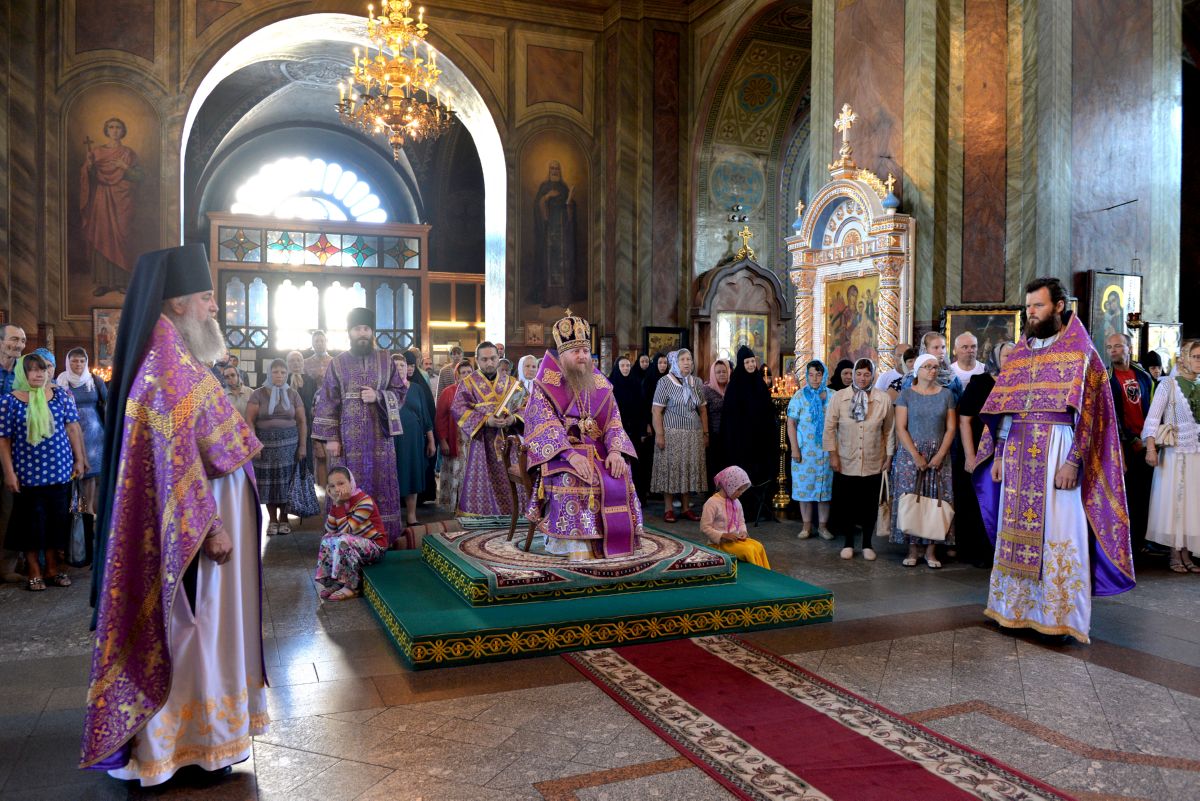 14 августа 2018 года, в праздник Происхождения (изнесения) Честных Древ Животворящего Креста Господня, первый день Успенского поста, епископ Усманский Евфимий совершил Божественную литургию во Владимирском соборе Задонского Рождество-Богородицкого мужского монастыря.