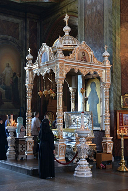 За Литургией читались тексты из Первого послания к Коринфянам святого апостола Павла (1 Кор. 1:18–24) и Евангелия от святого апостола Иоанна Богослова (Ин. 19:6–11, 13–20, 25–28, 30–35).