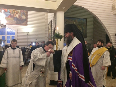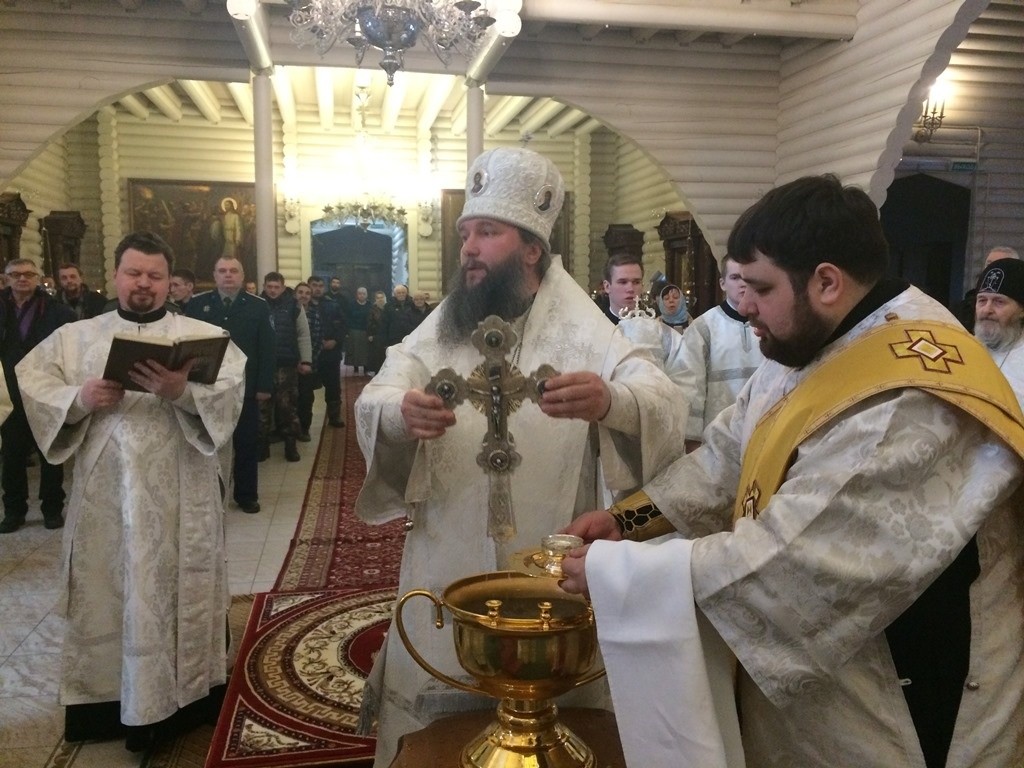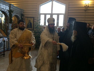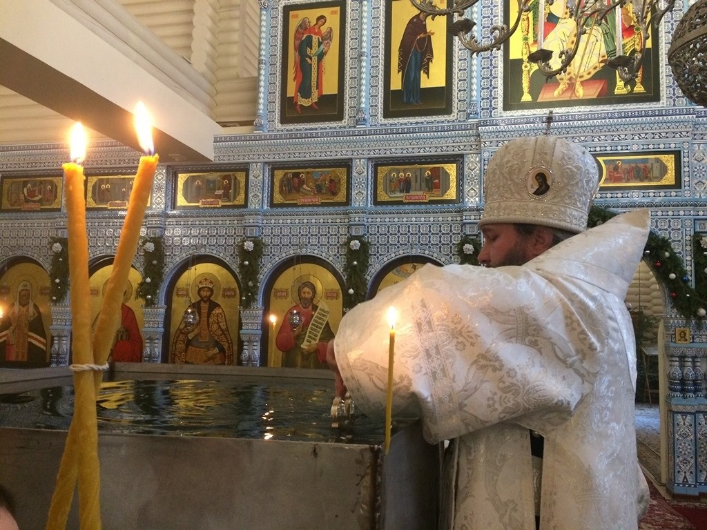 По окончании Литургии Владыка Евгений совершил Великое освящение воды – особый чин, во время которого воспоминается евангельского событие, ставшее освящением самого естества воды через погружение в нее Бога во плоти.