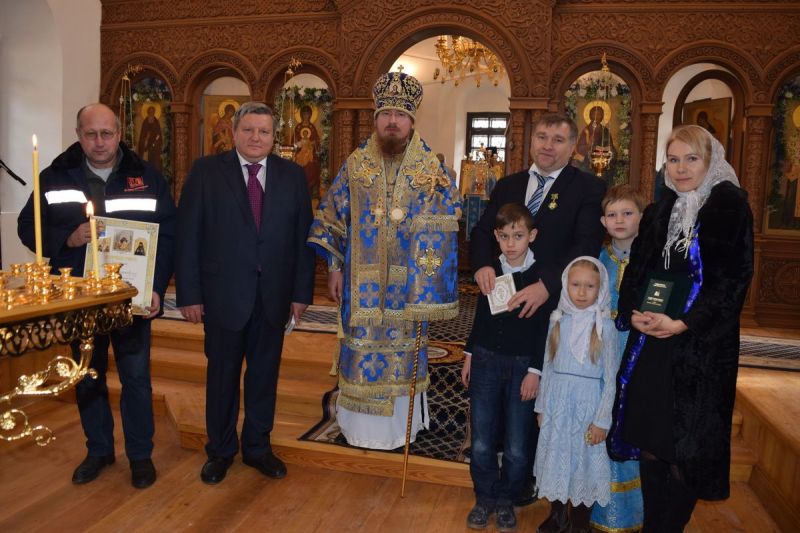 По окончании богослужения епископ Феодорит наградил особо потрудившихся в деле восстановления исторического облика Успенского храма.