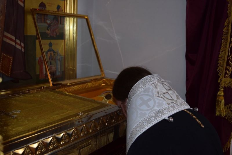 Перед началом доброго дела у мощей Вышенского и всея России чудотворца святителя Феофана Затворника, явившего образец монашеского и просветительского подвига XIX века, было совершено молебное пение.