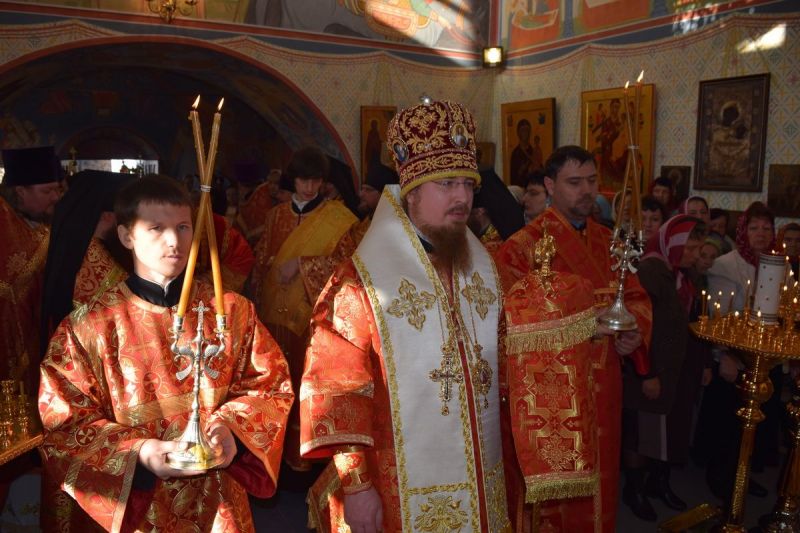 Празднование началось с чина обновления храма Великомученика Димитрия Солунского, где закончились восстановительные работы по настенной росписи и установке иконостаса.