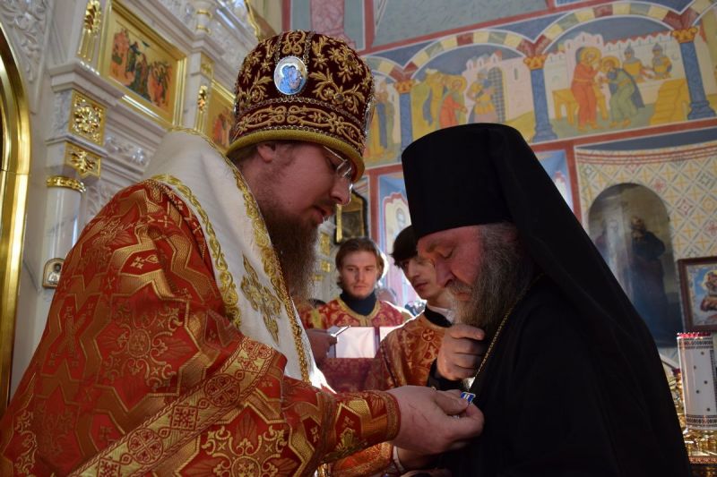 В торжественный день обители епископ Феодорит удостоил настоятеля монастыря игумена Амвросия (Калабухова) медали святителя Василия Рязанского I степени.