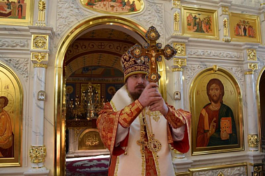 По возглашении многолетия архипастырь произнес проповедь перед молящимися.