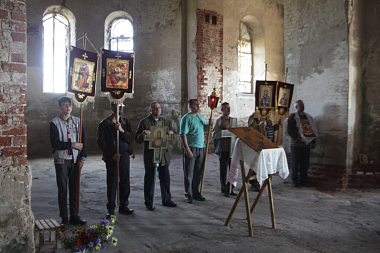 В храме молились верующие, прибывшие с крестным ходом «О благополучии семейной жизни» из с. Носовского (Степановского).