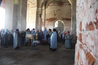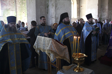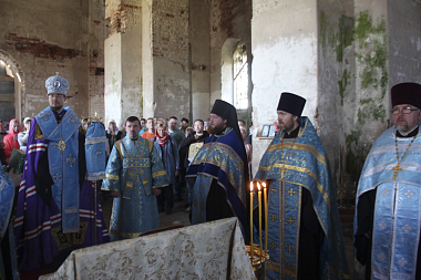 Его Преосвященству сослужили клирики Череповецкой епархии: протоиерей Константин Лобанов, игумен Иов (Чернышев), иеромонах Марк (Шляхтин), иереи Сергий Бондарь, Михаил Селиверстов и Сергий Щербаков.