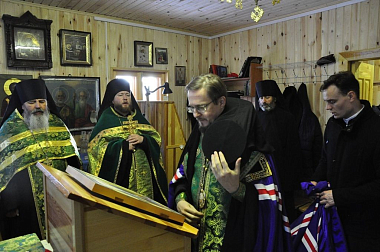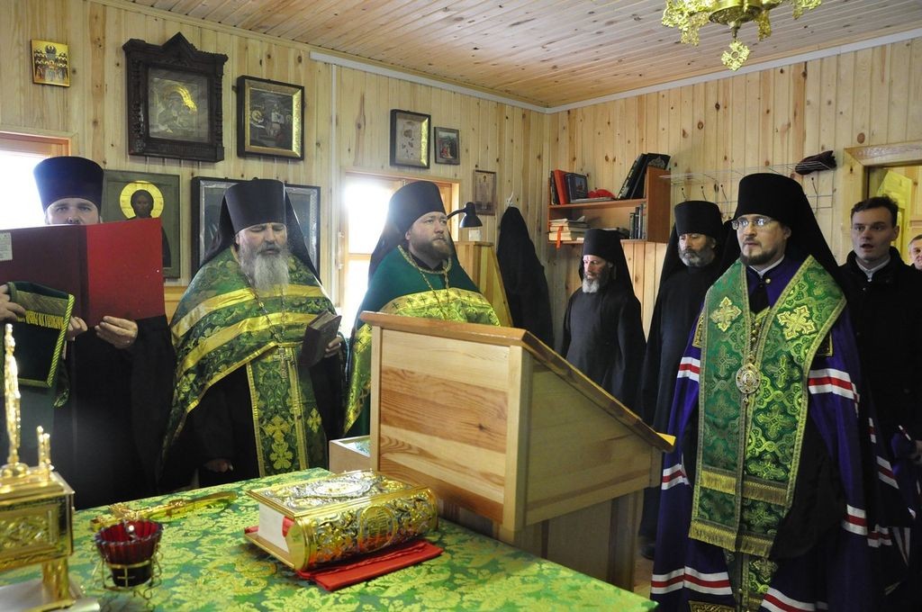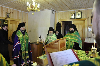 По прибытии в монастырь владыка Флавиан совершил молебен в домовой церкви преподобного Леонида, игумена Ирапского.