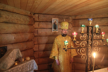 Правящему архиерею сослужил его секретарь иерей Андрей Кужелев.