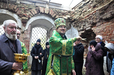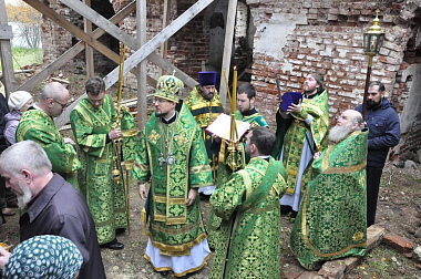 По окончании Литургии участники богослужения совершили крестный ход к восстанавливаемому храму Покрова Богородицы, где владыка Флавиан обратился к прихожанам с архипастырским словом и поздравил с памятью преподобного Иродиона.