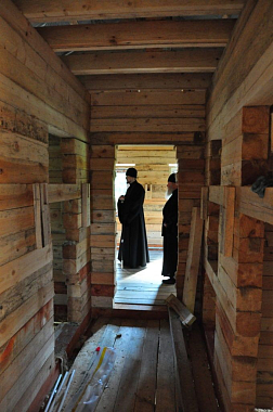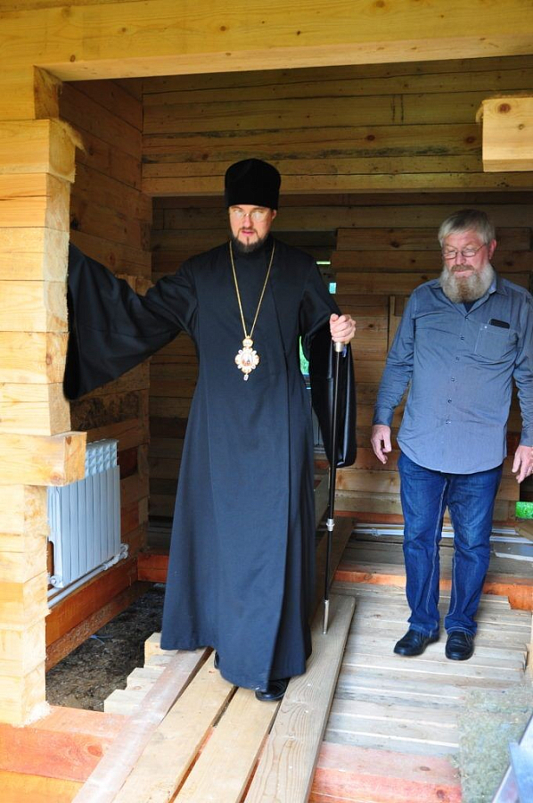 На месте строительства братского корпуса идут строительные работы, действует новая деревянная церковь. Владыка также осмотрел ремонтируемую каменную церковь Рождества Богородицы, поблагодарил трудников и пожелал им помощи Божией в этом богоугодном деле.