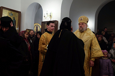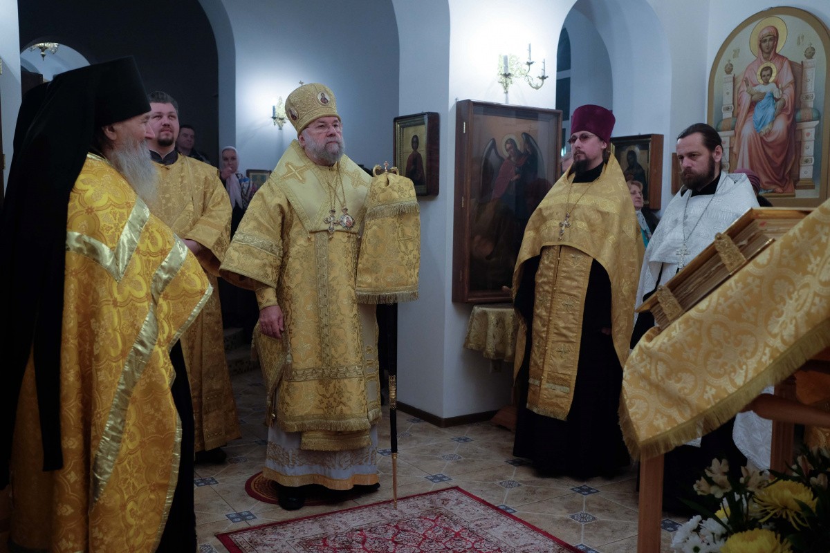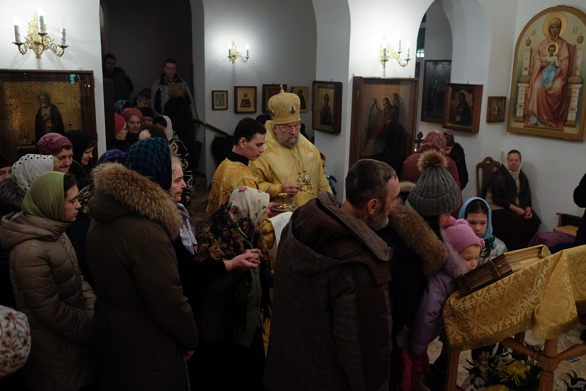 Во время полиелея по прочтении Евангелия владыка обратился к верующим с архипастырским словом и преподал благословение.