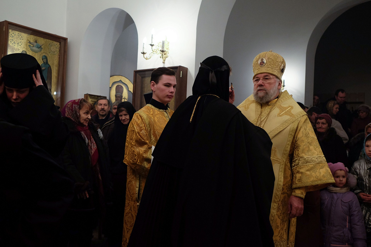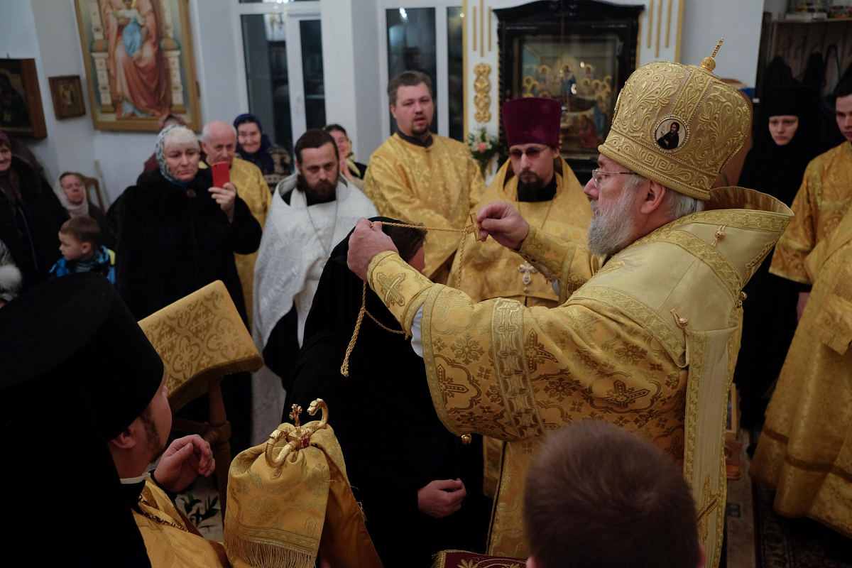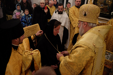 В завершение Преосвященный Иннокентий удостоил правом ношения наперсного креста настоятельницу архиерейского Успенского подворья, старшую сестру монашеской общины монахиню Иулиания (Опарину).