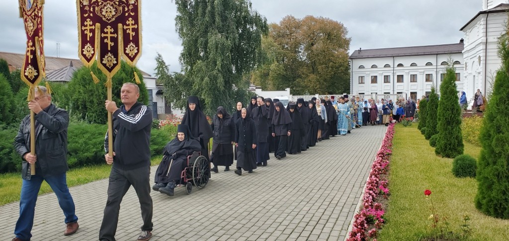 По окончании Литургии было совершено славление и вознесена молитва Божией Матери перед чудотворным образом «Калужская», после чего был совершен крестный ход вокруг святой обители.