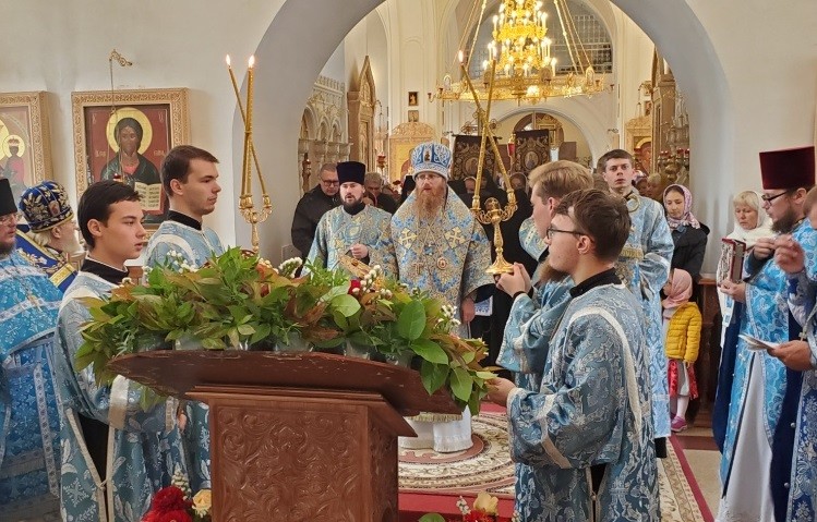 Его Преосвященству сослужили почетный настоятель храма в честь святых апостолов Петра и Павла г. Калуги – протоиерей Анатолий Рыжков, протоиерей Георгий Витков, иеромонах Феофан (Сурин), иерей Максим Шишин, иерей Иоанн Голенок, протодиакон Сергий Комаров и диакон Даниил Бойко.