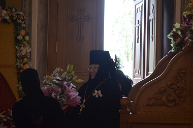 Поздравить игумению Ольгу приехали настоятельница Святоезерской Иверской обители игумения Силуана (Волкова), настоятельница Покровского монастыря г. Суздаля игумения Екатерина (Кожевникова), настоятельница Макариево-Решемского монастыря игумения Феофания (Губайдулина).